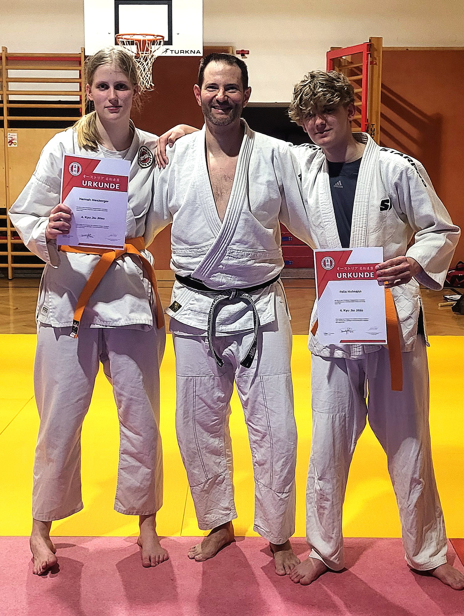 Nach ein paar Extraeinheiten auch abseits des Dojo stellten sich Hannah und Felix als erste der „jungen Wilden“ der Herausforderung und machten ihren Orangegurt. Ja, das war richtig gut, die beiden harmonierten und unterstützten sich bei der Prüfung und in der Vorbereitung perfekt, auch hier sehe ich mit Zuversicht, dass es voran geht!